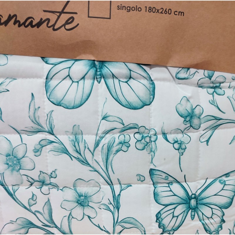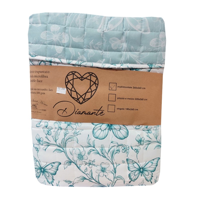 Trapuntino primavera / estate Diamante Fiori farfalle da Home sweet home. Letto singolo, una piazza e mezza e matrimoniale, esterno e imbottitura in microfibra, bellissima stampa digitale. Ottimo rapporto qualità prezzo.