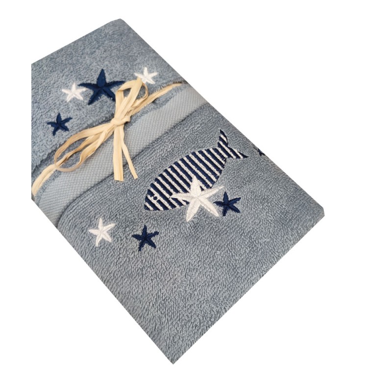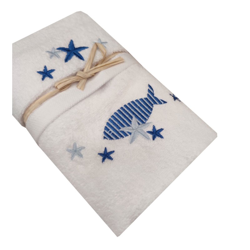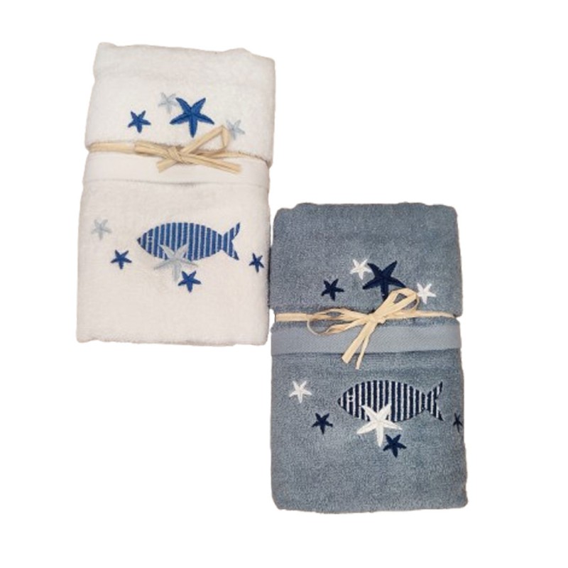 SET SPUGNA RICAMATO ASCIUGAMANO + OSPITE PESCI PEZZOLI