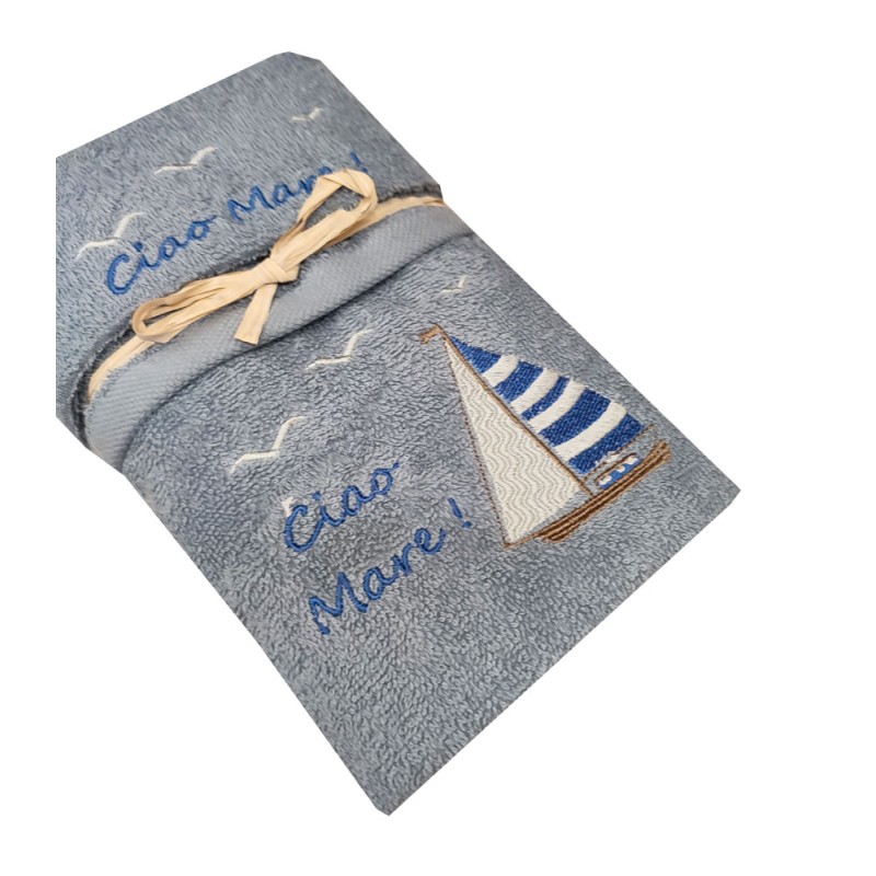 SET SPUGNA RICAMATO ASCIUGAMANO + OSPITE CIAO MARE PEZZOLI