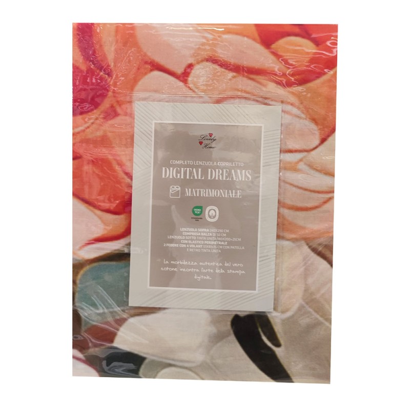 COMPLETO LENZUOLO COPRILETTO MATRIMONIALE DIGITALE DREAMS FIORI MULTICOLORE LOVELY HOME