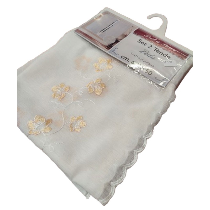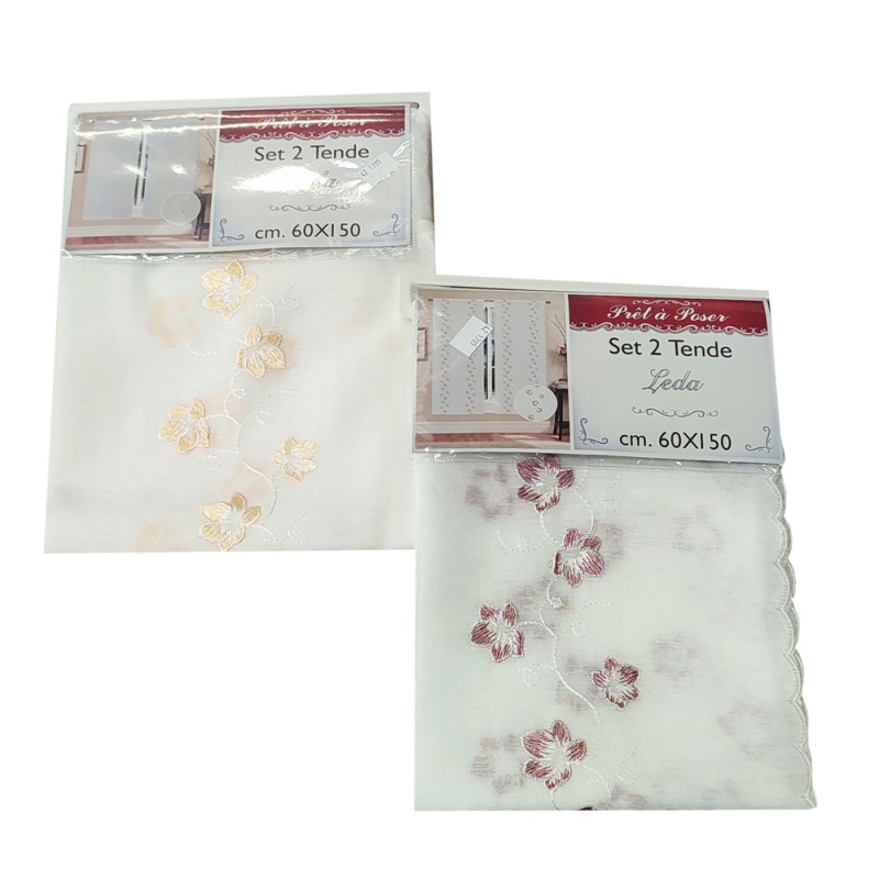 Coppia tende ricamo Leda da VT, prodotto di importazione. Confezione da 2 pezzi, 60x150cm e 60x240cm. Tessuto in poliestere. Ottimo prezzo di vendita.