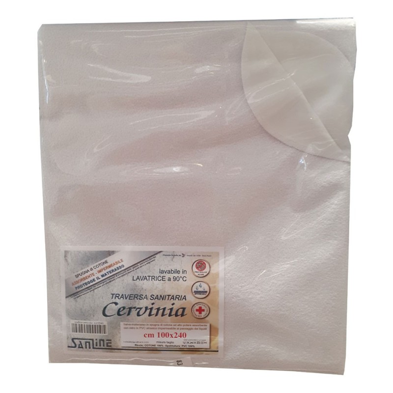 Traversa sanitaria impermeabile Cervinia da Sanline, ottima azienda italiana nella produzione di biancheria per la casa di alto livello. Protegge il materasso, disponibile nelle misure letto singolo / una piazza e matrimoniale / due piazze.