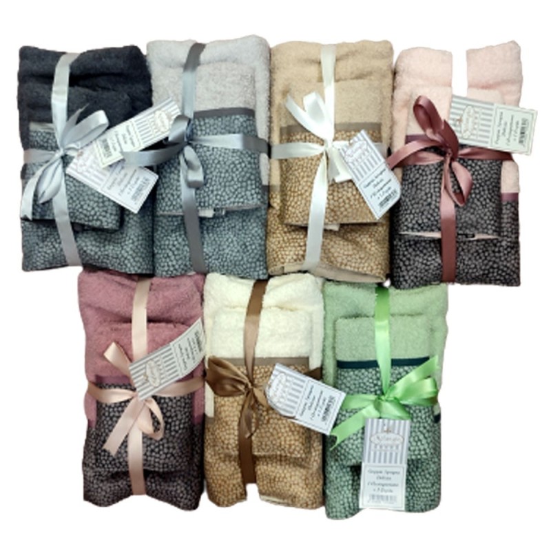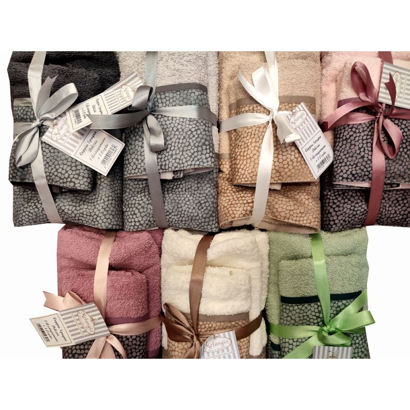 COPPIA SPUGNA ASCIUGAMANO + OSPITE DELIZIA PALLINI MACULATO MELANGIO