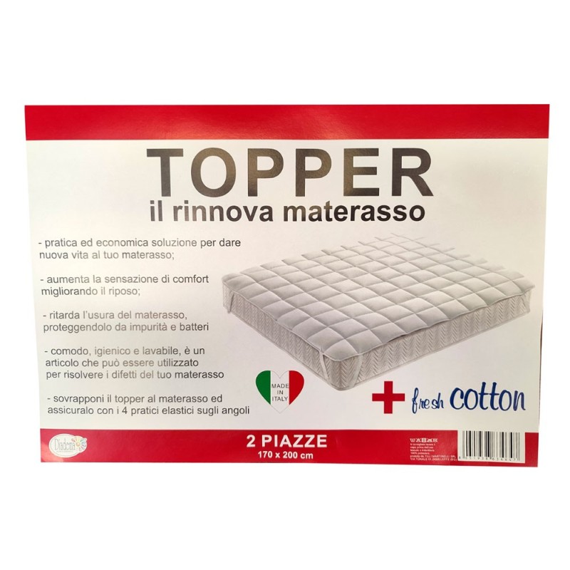 Topper per materasso Diadema. 3 misure letto, tessuto esterno e interno 100% Poliestere, trapuntato, morbido, confortevole e consistente. 4 angoli con elastico. Ottimo rapporto qualità prezzo.