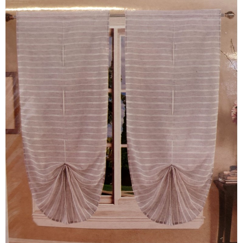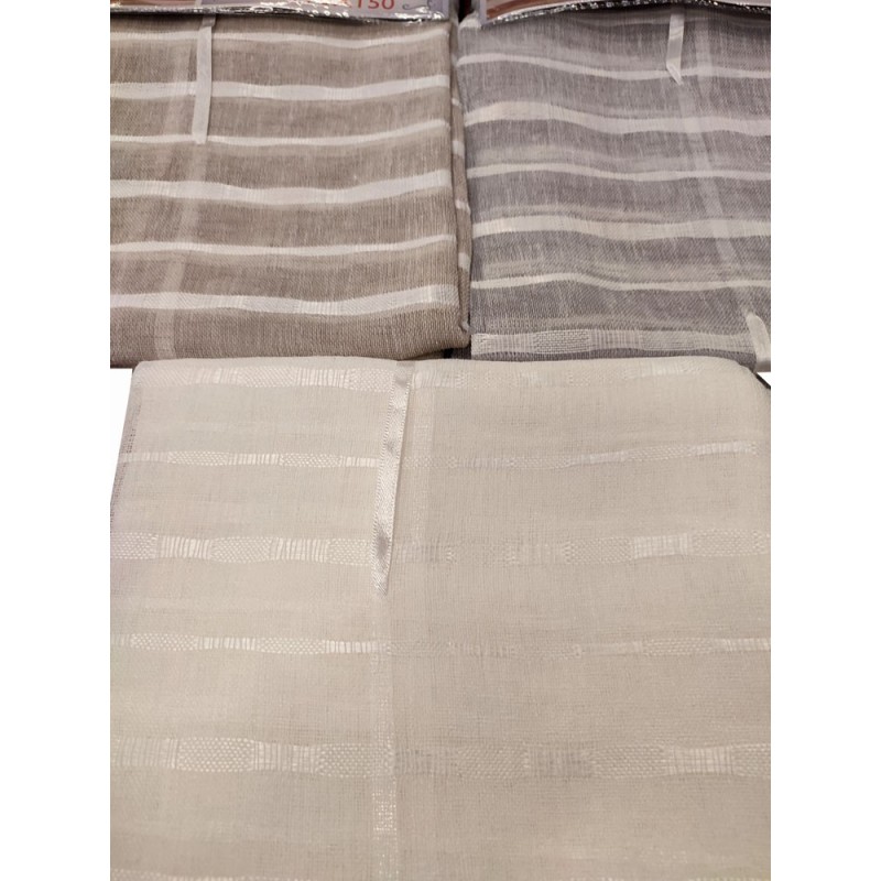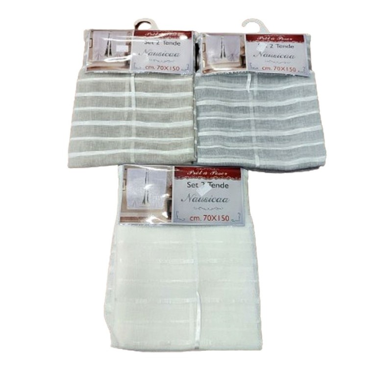 Coppia tende rigata Nausicaa da VT, prodotto di importazione. Confezione da 2 pezzi, 70x150cm e 70x240cm, 3 colori disponibili, a pacchetto. Tessuto in poliestere semitrasparente. Ottimo prezzo di vendita.