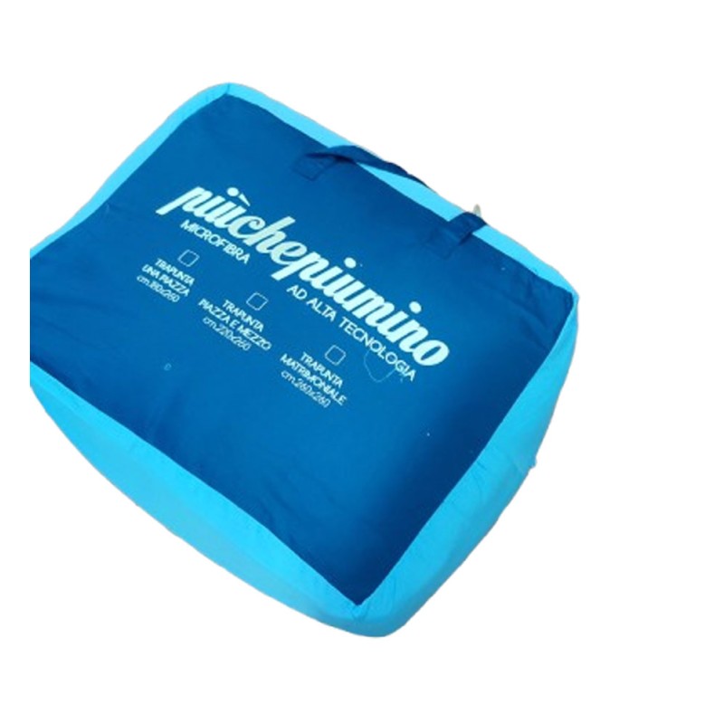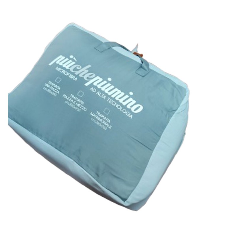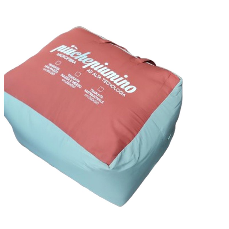 Piumino Piùchepiumino da Gitiesse. Misure letto matrimoniale, una piazza e mezza e singolo. Dalla applicazione delle più avanzate tecnologie tessili nascono i fiocchi di microfibra di poliestere. Un materiale dalla straordinaria leggerezza e elasticità. La capacità di immagazzinare notevoli quantità d'aria favorisce la traspirazione, mantenendo costante la temperatura corporea. Inoltre, la completa anallergicità e la facilità di lavaggio rendono il capo perfettamente igienico. 7 colorazioni double face, come la colorazione della sacca, bellissimo prodotto con un ottimo prezzo di vendita.