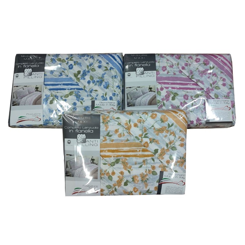 Completo lenzuola 100% flanella cotone disegno Fiorellini Marinoni. Disponibile nella misura letto matrimoniale / due piazze, trattamento anti-pilling, bel prodotto made in Italy con un ottimo rapporto qualità prezzo.