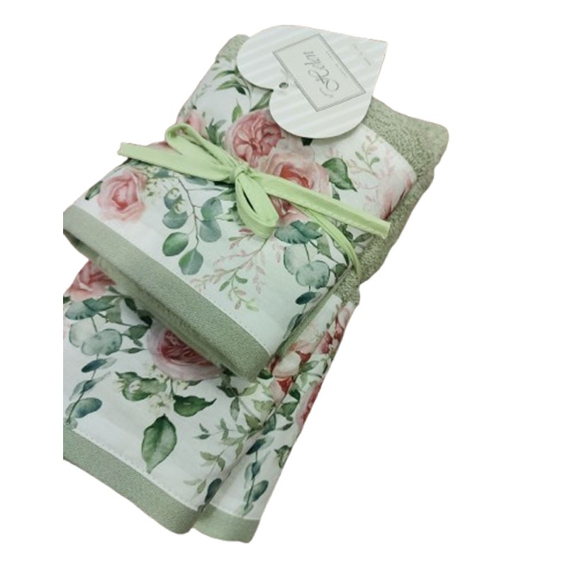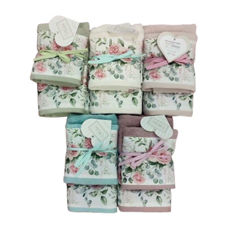 COPPIA SPUGNA ASCIUGAMANO + OSPITE DIGITALE NEW FLOWER HELEN