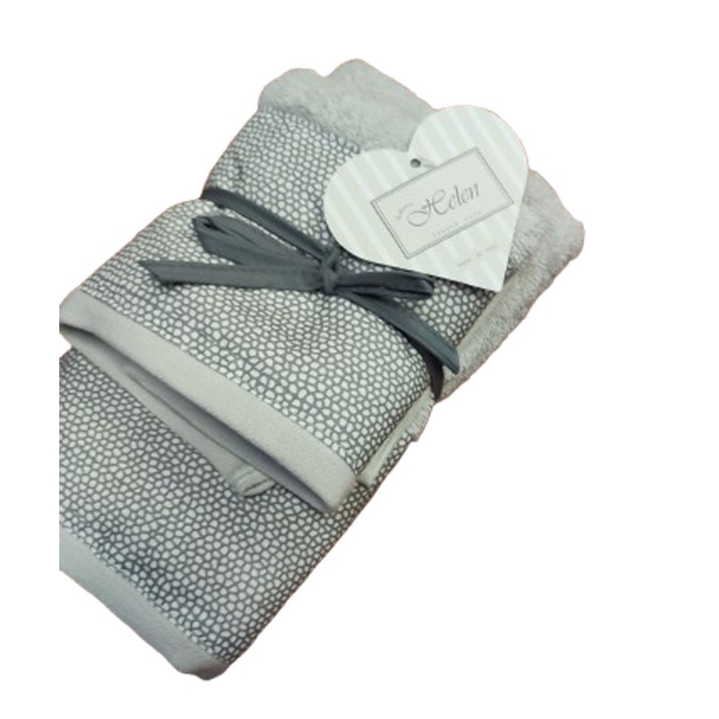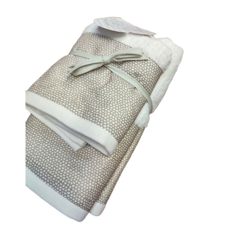 Coppia spugna asciugamano + ospite Sassi da Helen, ottima azienda di biancheria per la casa made in Italy. Spugna morbidissima 100% cotone, stampe nella balza, bellissimo prodotto di qualità e eleganza.