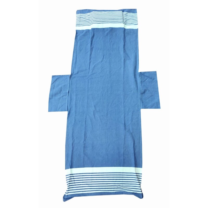 Telo mare da lettino Palau da Lovely home, ottima azienda di biancheria per la casa. Misura 75 x 195 cm, 80% cotone e altre fibre, con tasche, cuscino gonfiabile e sacca. Fissaggio angoli con elastici. Bellissimo articolo di vendita.