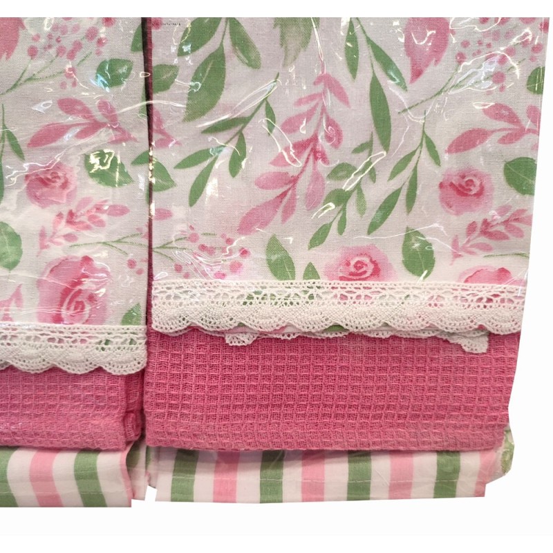 SET 18 PEZZI STROFINACCI COTONE 45X65CM PIZZO FLORAL LOVELY HOME