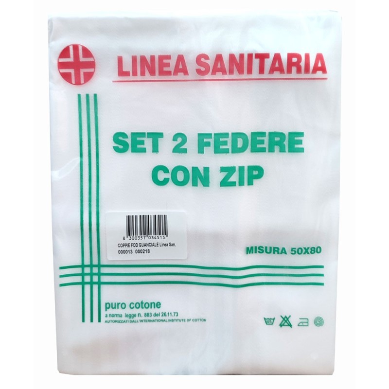 Coppia federe copriguanciale con zip Linea Sanitaria Sanfor, in tessuto fasciato di puro cotone. Ottimo rapporto qualità prezzo.