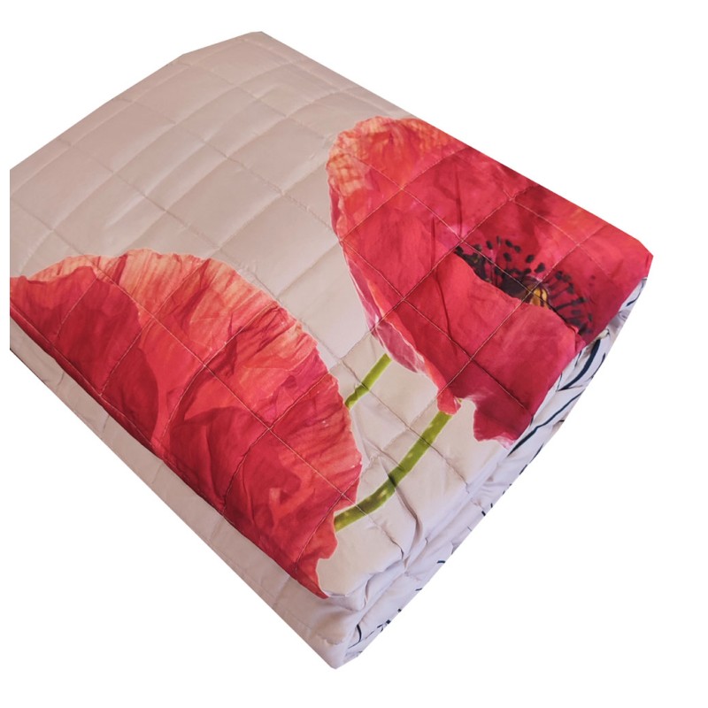 Trapuntino primavera/estate disegno Flower power 2650 da Cogal, ottima azienda di biancheria per la casa Made in Italy. Per letto matrimoniale, double face, stampa digitale, tessuto esterno in microfibra extra fine con trattamento soft peach skin, mordida al tatto ma non scivolosa. Imbottitura in microfibra 100 gr/mq. Abbinabile al completo lenzuolo della stessa linea. Prodotto di qualità made in Italy.