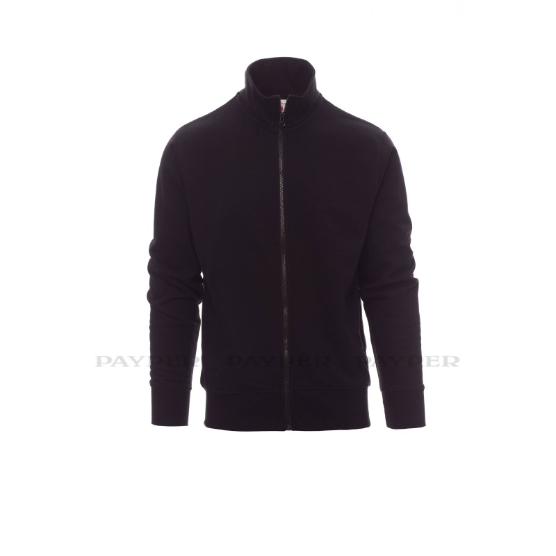 Felpa garzata da uomo Payper modello Houston, zip intera in plastica in tinta con cursore singolo in metallo, manica a giro, polsini e vita in costina elasticizzata, cuciture rinforzate, nastro di rinforzo interno collo in tinta. 5 colori, taglie da XS a 5XL.