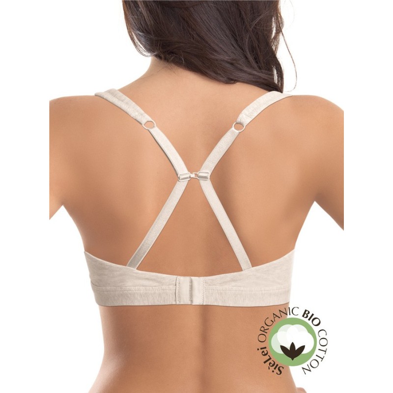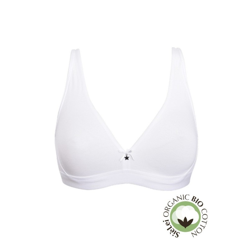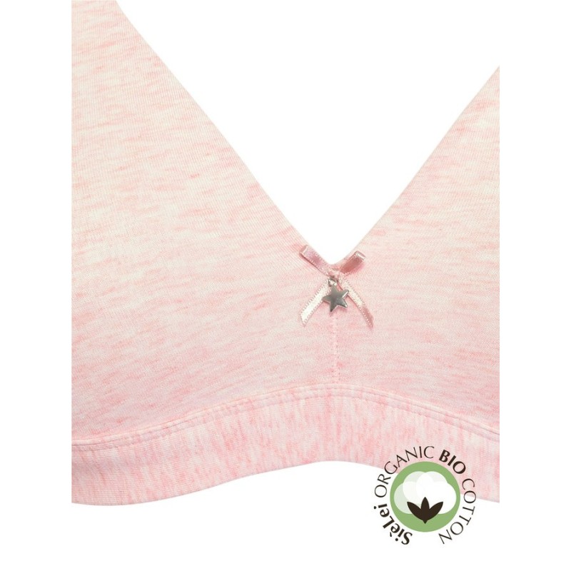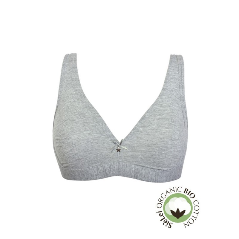 Triangolo non imbottito senza ferretto, in cotone BIO, taglia dalla 2 alla 5, coppa B, colori bianco, nero, grigio melange, ecrù melange e rosa melange.