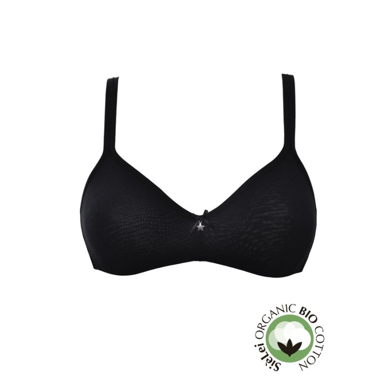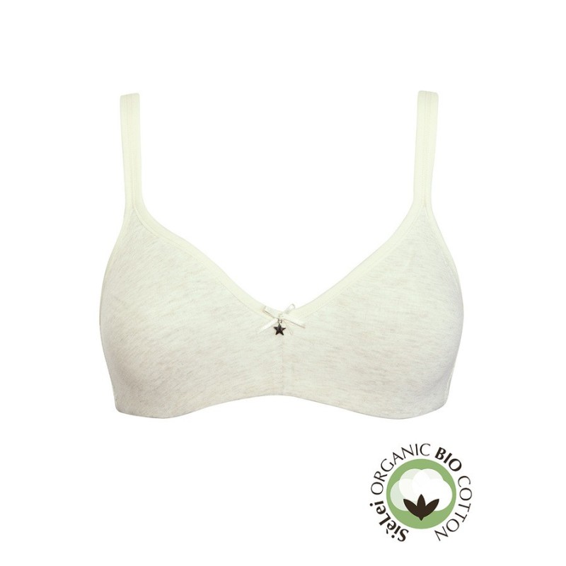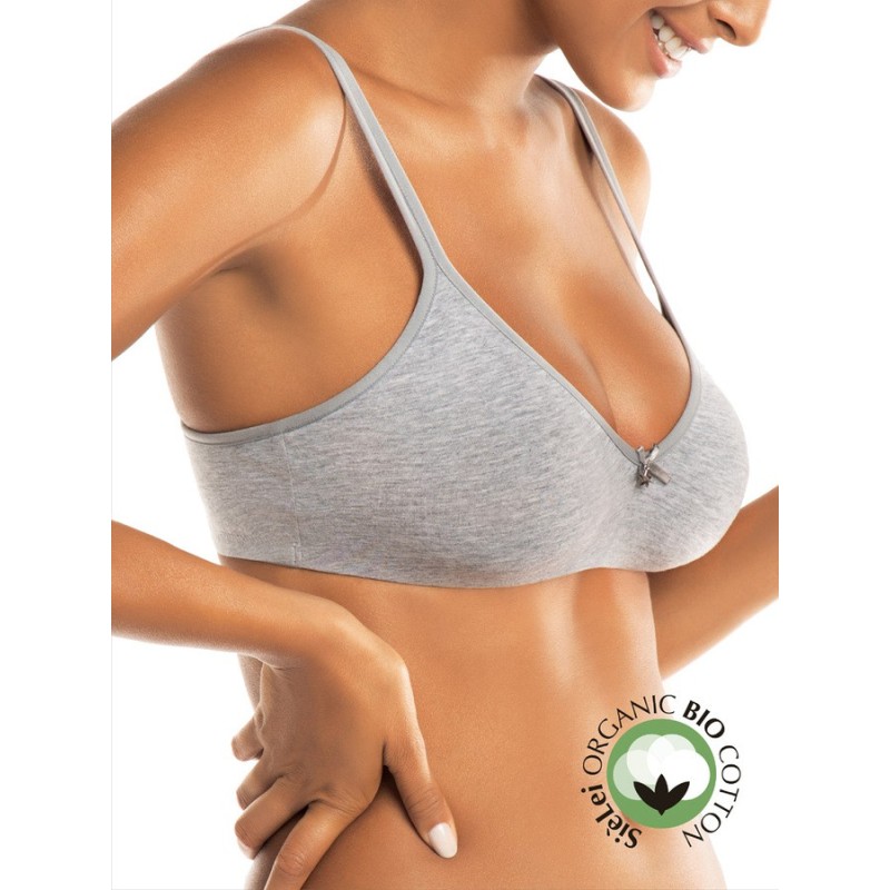 Reggiseno non imbottito senza ferretto, in cotone BIO, taglia dalla 2 alla 5, coppa B, colori bianco, nero, grigio melange, ecrù melange e rosa melange.