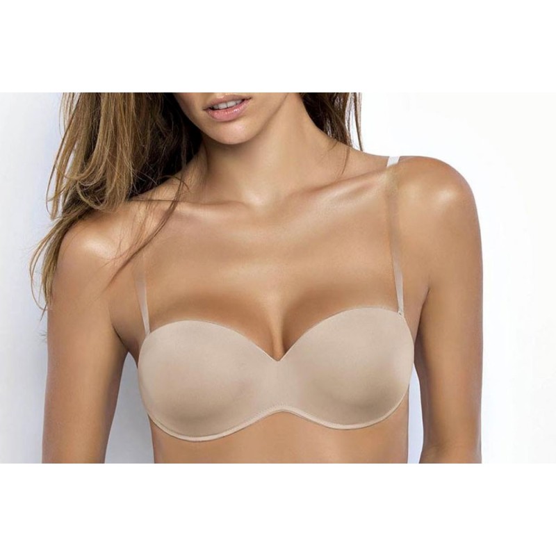 - Fascia preformata con ferretto e coppe graduate ad effetto schiena nuda. Modello realizzato in morbidissima microfibra lucida con eleganti profili sulle coppe, spalline ricoperte intercambiabili e cuciture invisibili