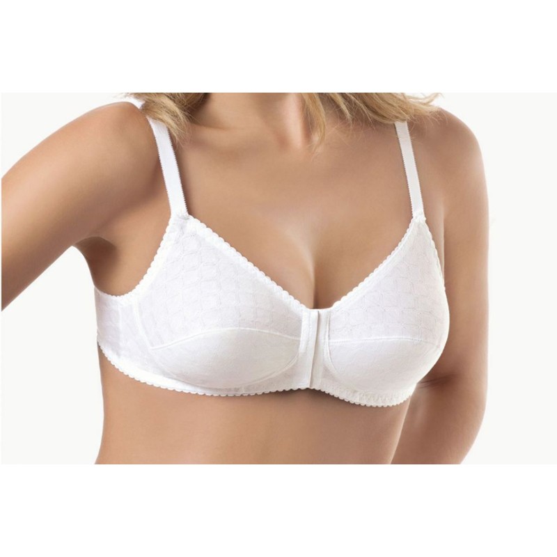 - Reggiseno aperto davanti con centroseno alto e chiusura a 4 ganci. Completamente realizzato in cotone operato, le coppe con ripresa centrale sono doppiate e le spalline sono regolabili. Senza ferreto, per massimo comfort.